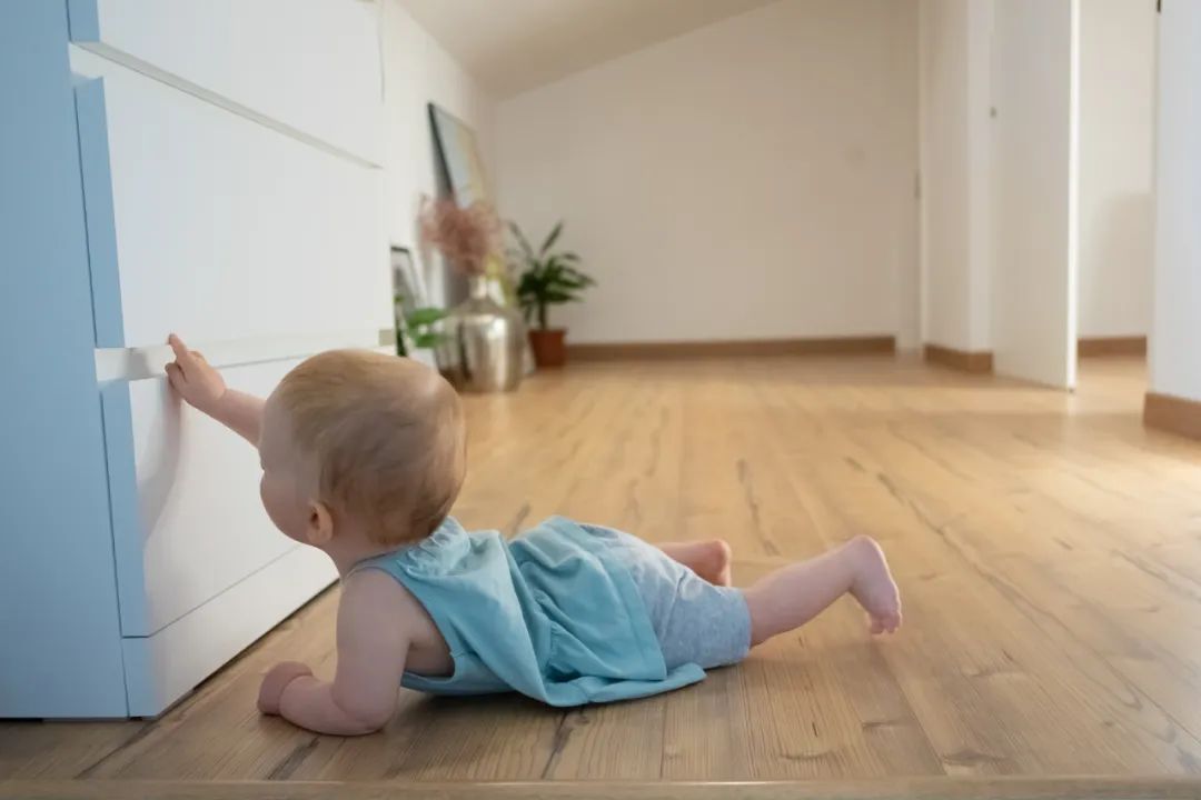 6个月后的宝宝,开始真正碰触世界,享受在地面爬行。人类幼崽在学会走路之前,爬行是宝宝运动发展中一个重要动作,对宝宝提高身体协调能力锻炼他们的肌肉有着很好的促进作用。
