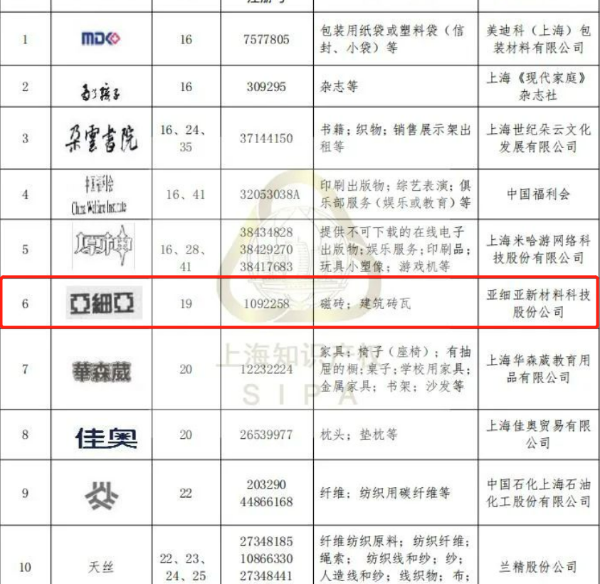 12月16日,上海市知识产权局发布第十一批、十二批上海市重点商标保护名录,共涉及76家企业的103件注册商标。其中,亚细亚瓷砖商标荣誉入选,这一殊荣正是对亚细亚重视品牌商标及知识产权工作的充分肯定和鼓励认可。