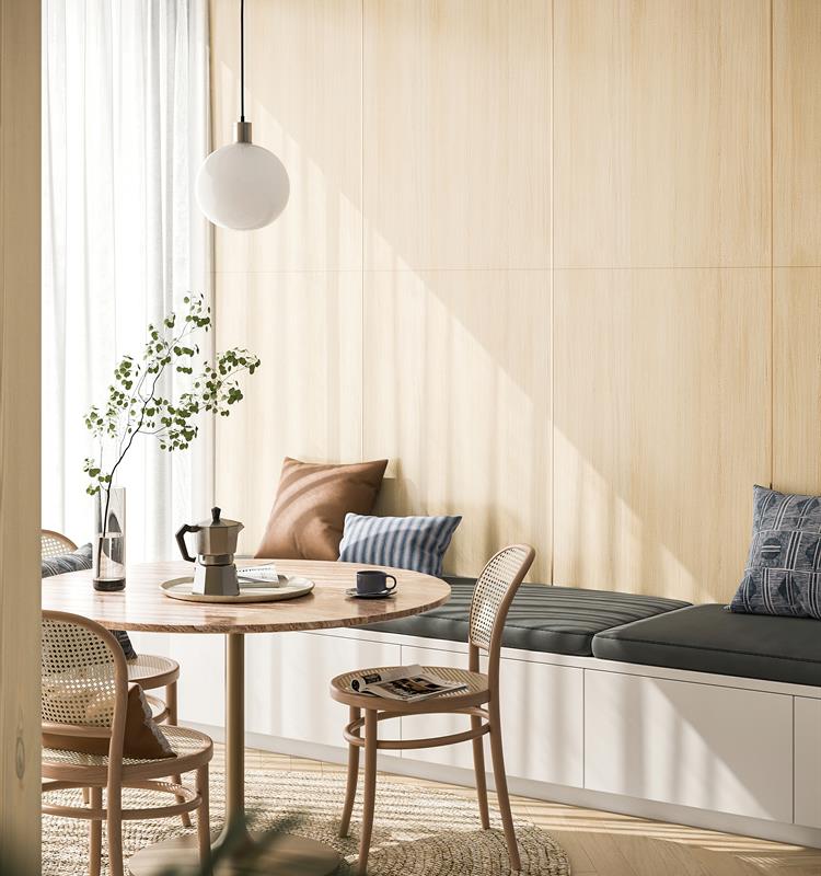 银梨的木材色淡雅,质地极为优良 ,纹理自然流畅,象征着蓬勃的生命力。亚细亚采用高亮精雕工艺叠加,精细地复刻北欧银梨的素雅和清新,为空间平添一份柔和温暖,淡雅怡人。