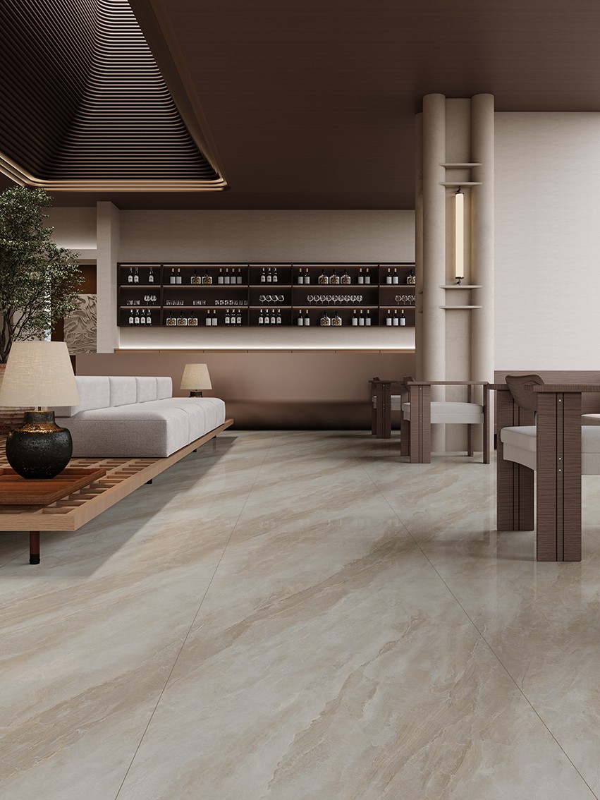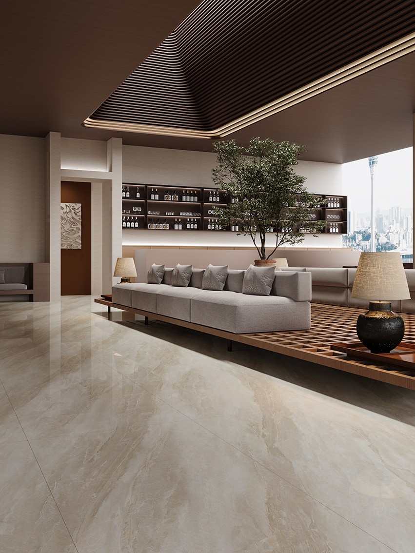 产品灵感源于李清照的那句“落日熔金,暮云合璧”,用错落的金线描绘浪漫光影,凝聚大理石的天然纹理与丰富色泽,奏出暖色调的协奏曲,续写源自千年的浪漫氛围。