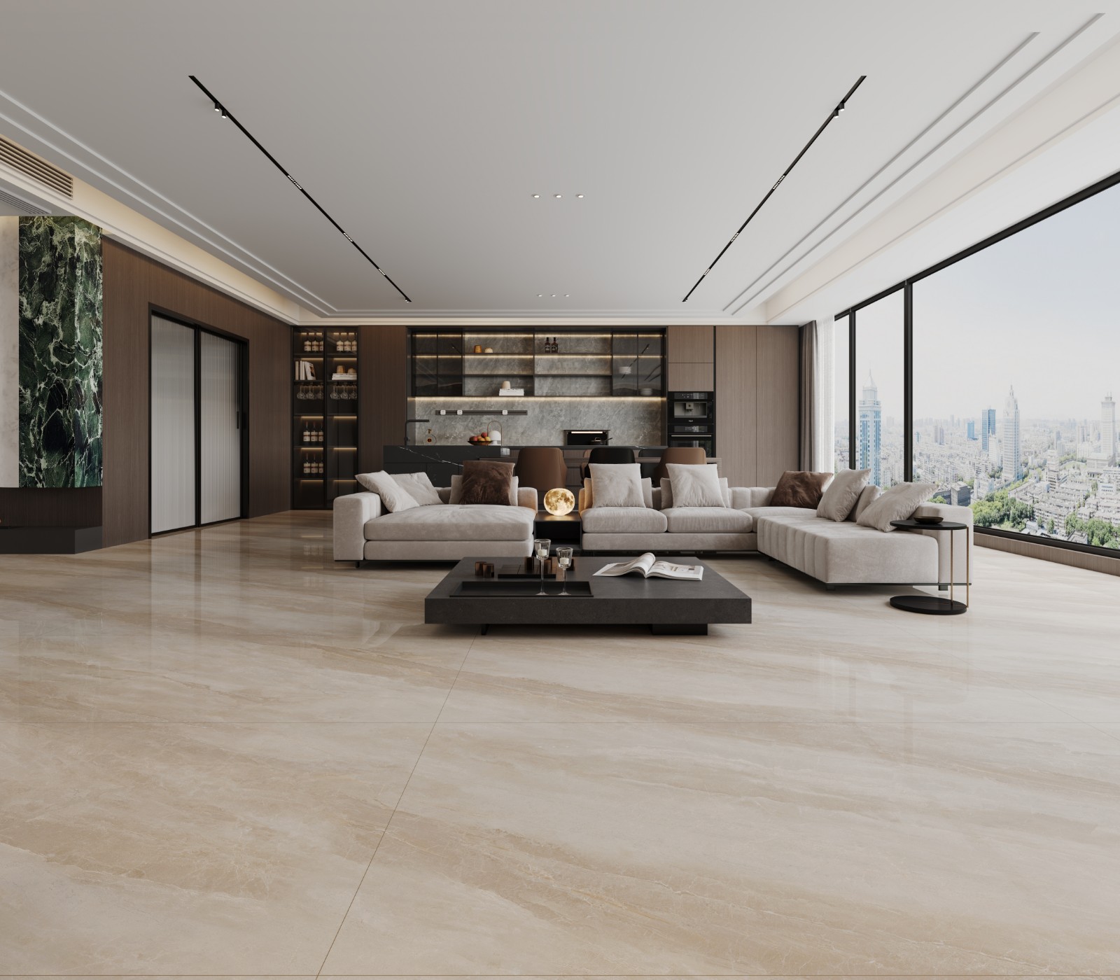 产品灵感源于李清照的那句“落日熔金,暮云合璧”,用错落的金线描绘浪漫光影,凝聚大理石的天然纹理与丰富色泽,奏出暖色调的协奏曲,续写源自千年的浪漫氛围。