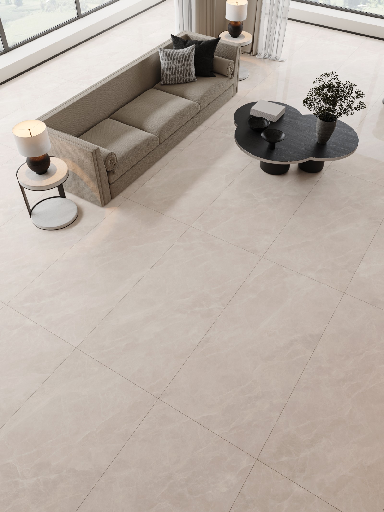 设计灵感来源于乌尤尼盐沼的云海,当 阳光洒在这片无垠的镜面上,云朵在天 空与地面之间自由游走,形成一幅流动 的画卷。我们捕捉了这一瞬的宁静与和 谐,将云海的轻盈与天空的深邃融入瓷 砖设计。每一片瓷砖都如同天空之镜, 反射出室内的光影,为您的空间带来一 份宁静与深远。